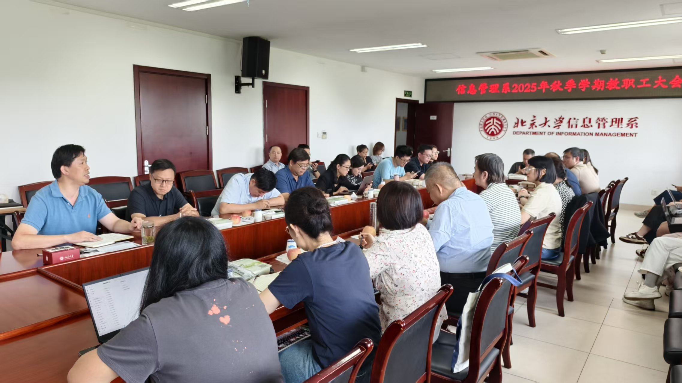 2025年9月12日中午,信息管理系在方李邦琴楼507会议室召开2025年秋季学期教职工大会。全体教职工参加会议,会议由系主任张久珍主持。